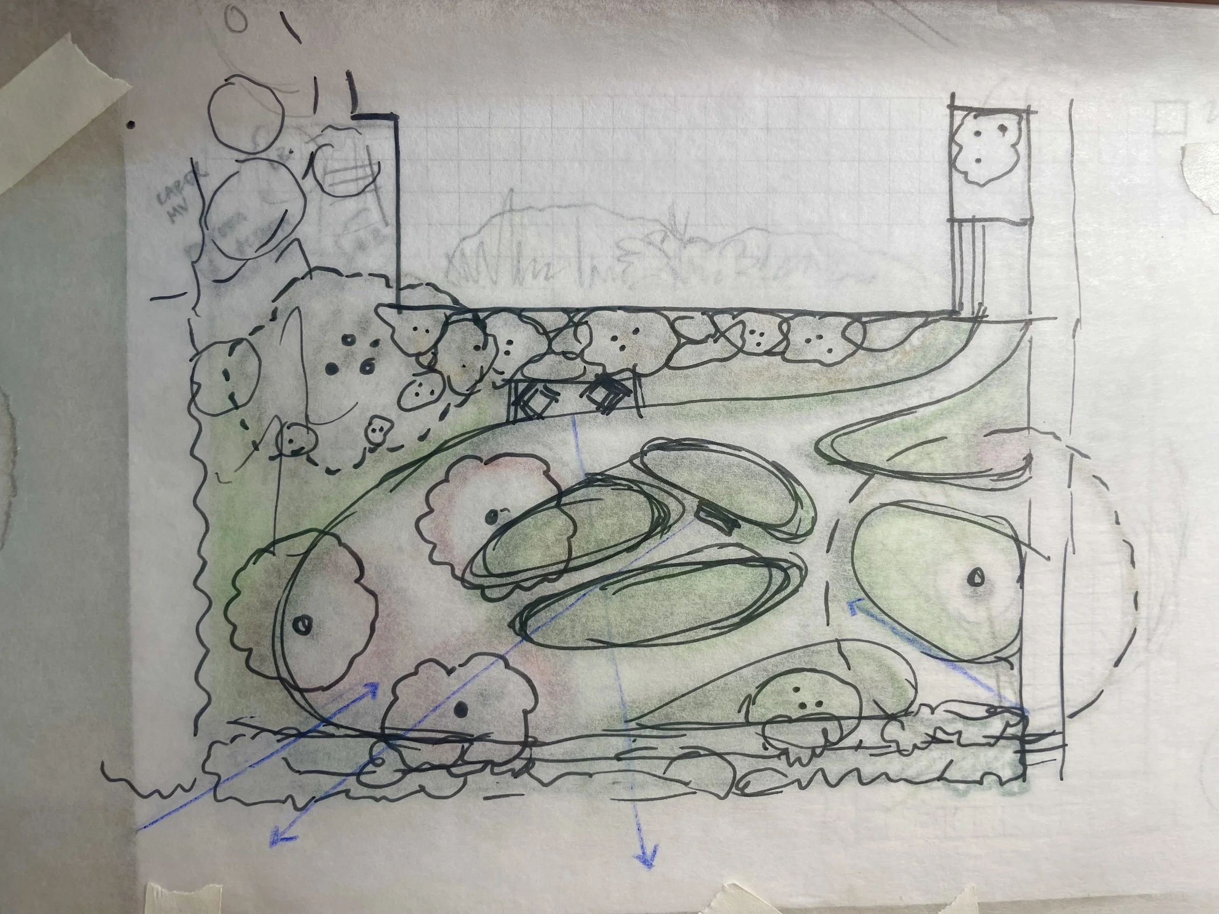 Site design: creating a spatial composition for an entire property or area to enhance daily living, deepen connections to nature, and encourage moments of reflection and celebration. I work with clients to shape outdoor spaces that are ecologically resilient and intuitively inviting: cohesive, sustainable landscapes that thrive, evolve, and enchant over time.